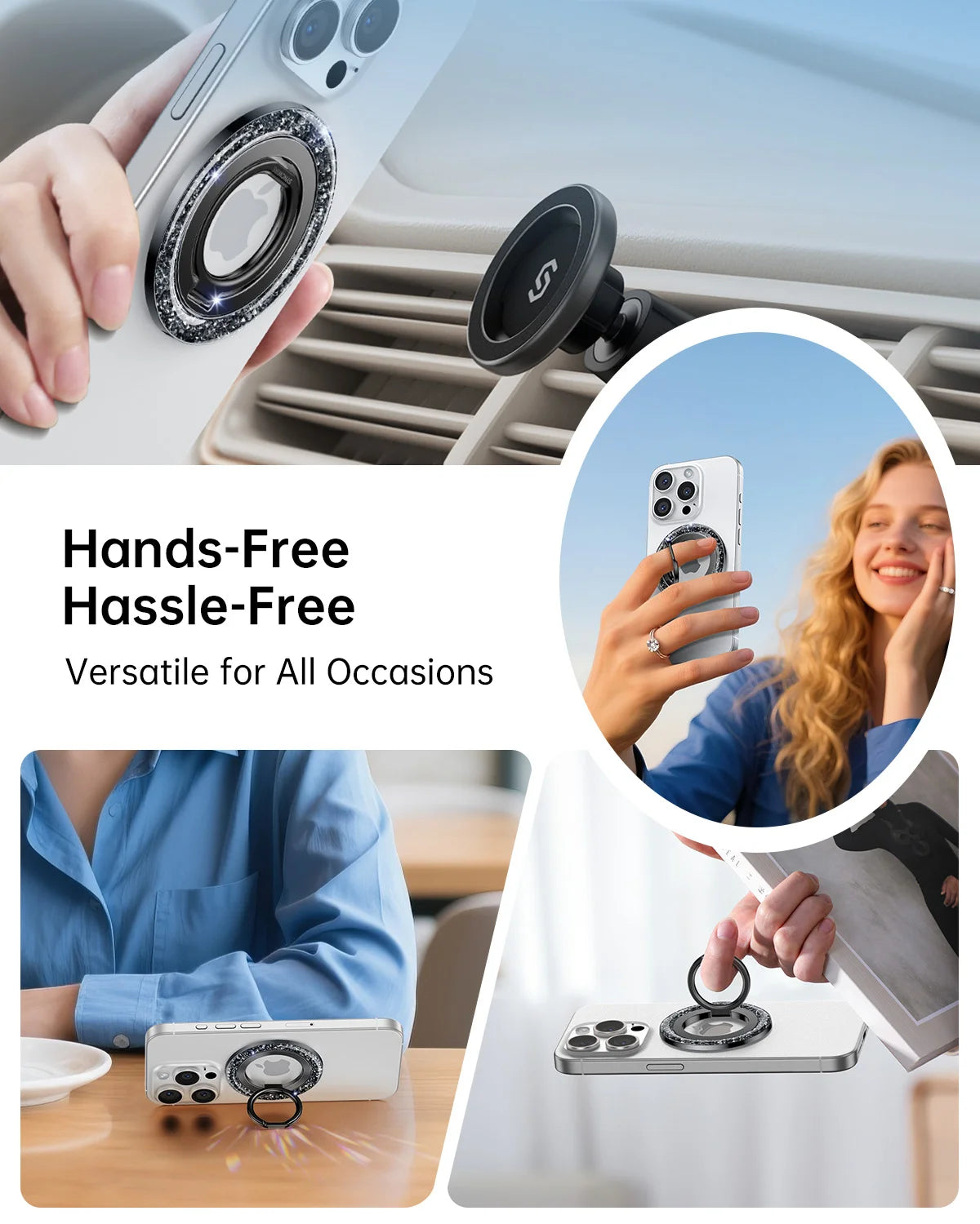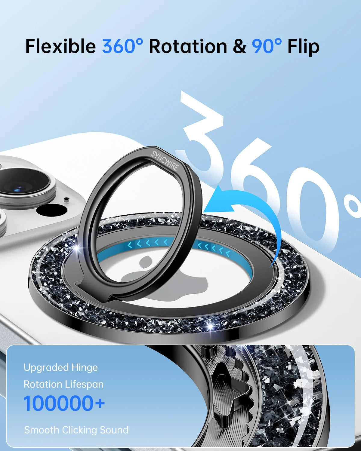 - Support magnétique à paillettes pour téléphone : L'anneau magnétique pour téléphone Syncwire Glitter allie élégance et fonctionnalité. Grâce à sa conception magnétique, il se fixe facilement aux coques compatibles MagSafe, assurant ainsi une prise en main sûre de votre téléphone. Ses paillettes attirent le regard et apportent une touche de luxe à votre quotidien. C'est le cadeau idéal pour votre femme, votre fille, votre mère, votre tante, votre famille, votre petite amie, vos amis ou pour vous-même.