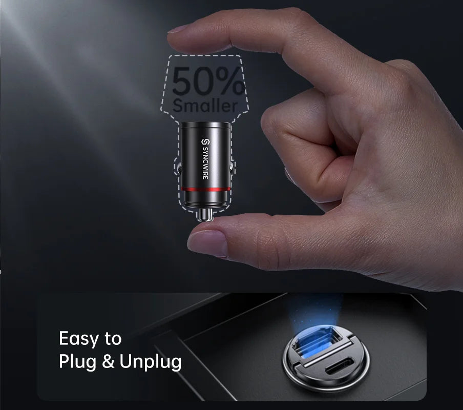 - Compact et pratique. Petit mais puissant, ce chargeur s'adapte parfaitement à la plupart des allume-cigares. Son anneau de traction unique facilite son retrait.