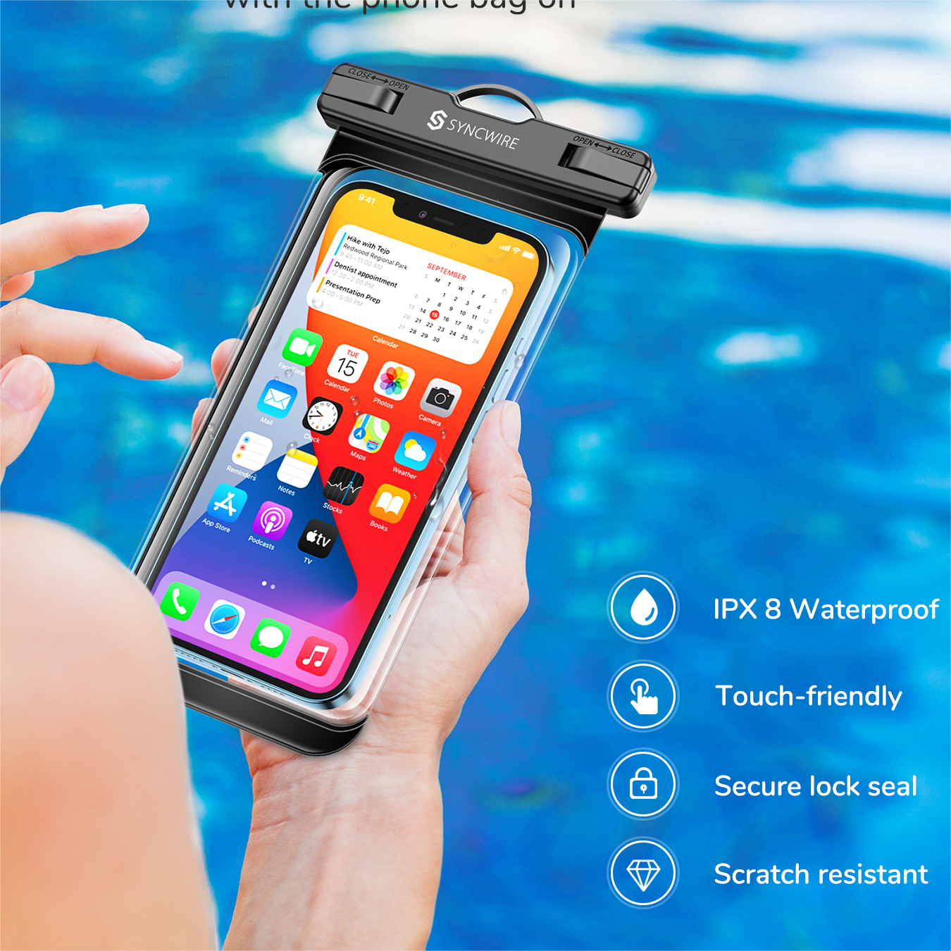 - Conception humaniséeCet étui étanche est doté d'une fenêtre panoramique transparente qui facilite la prise de photos, le visionnage de vidéos et la lecture d'e-mails. Son design sans coutures latérales vous permet d'utiliser les boutons latéraux du téléphone.